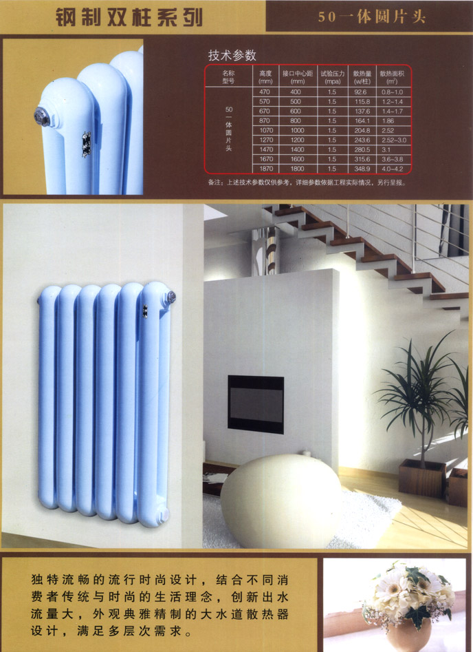 钢制双柱:50一体方片头